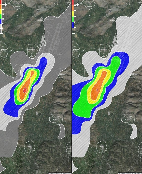 ΚΑΜΠΥΛΕΣ ΙΣΗΣ ΣΥΓΚΕΝΤΡΩΣΗΣ NOx & ΑΣ2,5 ΣΕ μgr/m3 ΜΠΕ ΝΕΟΥ ΔΙΕΘΝΟΥΣ ΑΕΡΟΔΡΟΜΙΟΥ ΣΤΟ ΚΑΣΤΕΛΛΙ 2018